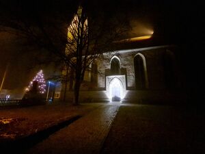 Die Firma Elektro Haizmann hat die Strahler an den beiden Seitenportalen der St. Georgskirche erneuert. Die alten Strahler waren defekt, nachdem sich erhebliche Feuchtigkeit im Inneren der Strahler angesammelt hat. Wir freuen uns, dass unsere Vollmaringer Kirche insbesondere in der Weihnachtszeit wieder so schön beleuchtet wird.