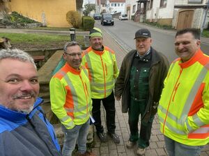 Gemeinsam mit Altortsvorsteher Lothar Nesch haben Tiefbauamtsleiter Rafael Beier, Wassermeister Michael Haas, Andreas Pagitz und Ortsvorsteher Daniel Steinrode erneut nach der Fehlerquelle am Vollmaringer Brunnen gesucht. Lothar Nesch, der als Ortsvorsteher 1988 für den Bau des jetzigen Brunnen verantwortlich war, hat sein Fachwissen mit eingebracht. In verschiedenen Scheunen und Kellern sowie in der Überlaufbrunnenstube auf dem Grundstück der Familie Schmidt wurde leider nichts gefunden. Es wird nun weiter an der Fehlerbehebung gearbeitet, damit der Brunnen bald wieder wie früher läuft und mit frischem Wasser versorgt wird.